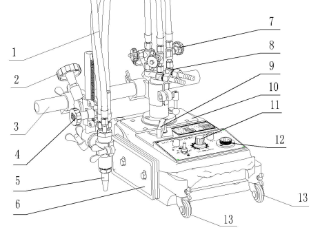 1.輸送氣體的軟管:一共三根,分別為燃氣;預熱氧和切割氧 |