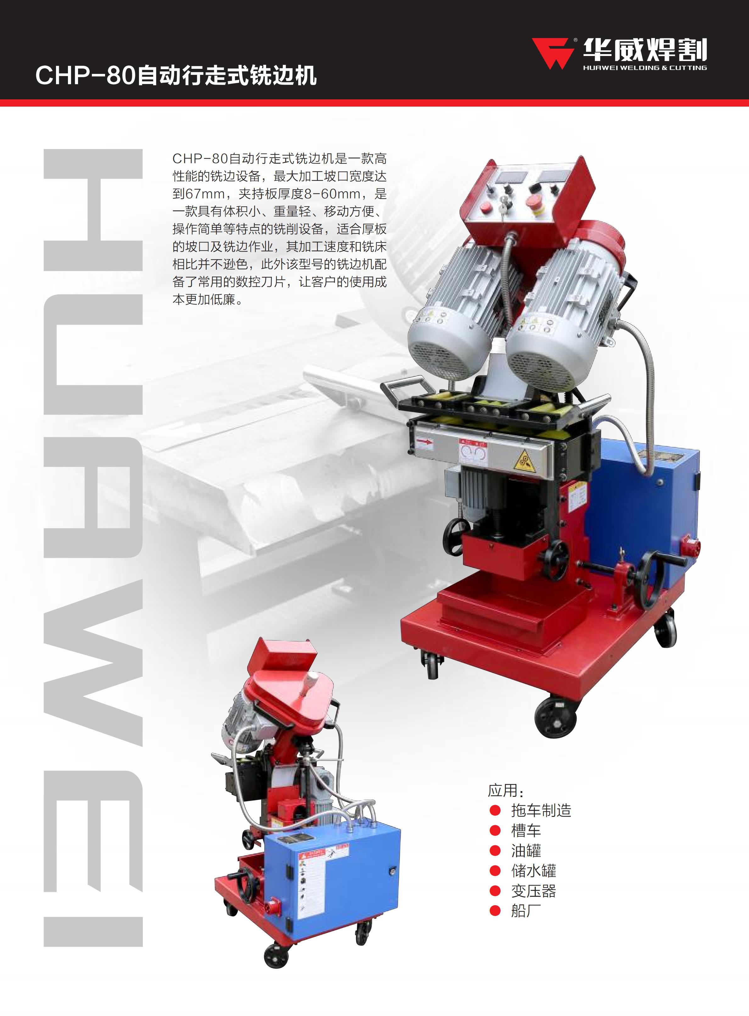 本產(chǎn)品是一款自動(dòng)行進(jìn)式銑邊設(shè)備,加工坡口過(guò)程中自動(dòng)行進(jìn)銑削,降低使用成本,減輕勞動(dòng)強(qiáng)度,采用冷切削作業(yè),加工后的坡口表面無(wú)氧化。坡口表面光潔度Ra3.2~6.3.完全符合焊接行業(yè)要求,無(wú)需去毛刺處理可以立即焊接使用,本品無(wú)污染,操作更加簡(jiǎn)單。
