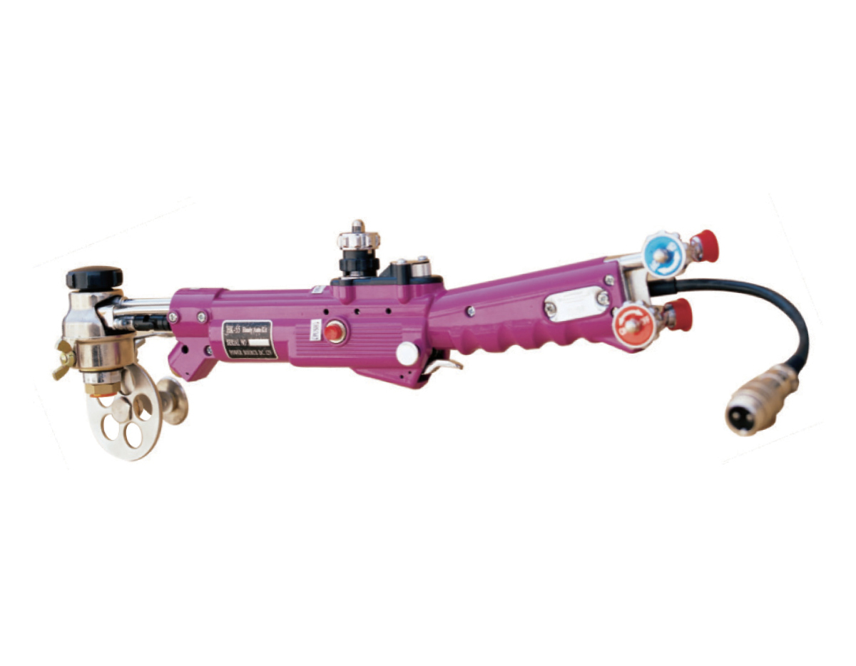 “HK-55”和”HK-55D”便攜式自動氣體切割器是基于實現(xiàn)便攜式切割和切割自動化的新奇設(shè)想而研發(fā)的。該裝置集各種切割型之長,可在所有工作現(xiàn)場使用。本機(jī)型因割嘴側(cè)的滾輪轉(zhuǎn)動而自動移動,操作人員可通過控制滾輪的方向,將鋼材切割成各種形狀。本機(jī)采用高強(qiáng)度鋁錠材料,精密壓鑄而成,結(jié)構(gòu)緊湊、經(jīng)久耐用、體積小攜帶方便,使用靈活,可實現(xiàn)各種場合的手工切割。行走采用直流伺服電機(jī)驅(qū)動,運(yùn)行平穩(wěn),切割質(zhì)量穩(wěn)定。更換附件可進(jìn)行不同角度坡口、曲線及圓周切割等。HK-55D機(jī)身上帶有自動點火裝置,操作簡單。本機(jī)型適用與造船、石油、冶金、金屬結(jié)構(gòu)等工廠,操作簡單易學(xué),即使是初學(xué)者也可較為容易進(jìn)行鋼材切割。