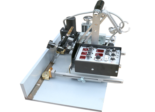 HK系列便攜式鞍形管端頭氣體切割機,是針對于管道相交焊接的切割要求而設(shè)計開發(fā)得。管道相交焊接需要切割鞍形口的形狀。該機器是通過鞍形模板,來實現(xiàn)割炬切割的軌跡。模板是根據(jù)需要切割鞍形口的形狀而制作。也可做普通的管道切斷或坡口切割。機器是由控制箱,割炬,主體機座所組成。各部件都由主體機座相連。通過離合裝置,使機器的運行部件脫離電動裝置而實現(xiàn)手動切割。機器的控制箱安裝在切割機構(gòu)另一側(cè),操作簡便,易于維修。該機器設(shè)計合理,結(jié)構(gòu)獨特,有四只對稱的底角螺桿支撐機器架在被切鋼管上。通過保險裝置將機器準確定位,它具有管道切割的對接點精度高和需要切割輔助時間少等特點。