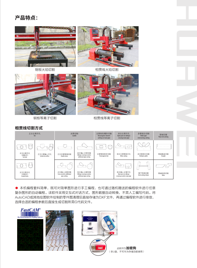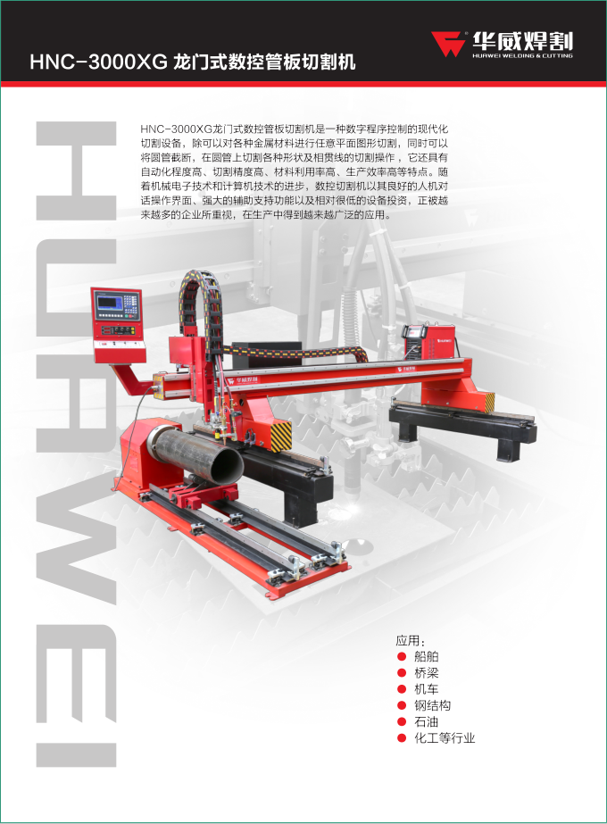 HNC-3000XG龍門式數(shù)控管板切割機是一種數(shù)字程序控制的現(xiàn)代化切割設(shè)備,除可以對各種金屬材料進(jìn)行任意平面圖形切割,同時可以將圓管截斷,在圓管上切割各種形狀及相貫線的切割操作 ,它還具有自動化程度高、切割精度高、材料利用率高、生產(chǎn)效率高等特點。隨著機械電子技術(shù)和計算機技術(shù)的進(jìn)步,數(shù)控切割機以其良好的人機對話操作界面、強大的輔助支持功能以及相對很低的設(shè)備投資,正被越來越多的企業(yè)所重視,在生產(chǎn)中得到越來越廣泛的應(yīng)用。